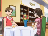 Later, while Haruhi and Hikaru Hitachiin are on a date together, the clouds darken and Haruhi becomes worried about thunder. Running into Arai while in town, the boy offers them a lift back to Pension Misuzu, but Hikaru snaps and tears off, with Haruhi chasing after him. Worried about them, Arai contacts Isao "Misuzu" Sonoda a bit later to learn that neither one has returned home. Tamaki Suoh goes off the deep end upon contacting Hikaru and upon learning that he has abandoned Haruhi in the storm, commands him to locate the girl immediately because of her brontophobia. Hikaru learns a lesson about thinking about the feelings of others and when Arai shows up the following morning with a fresh watermelon to share, Hikaru genuinely makes amends.