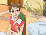 He first appears in Ep 15 - The Refreshing Battle in Karuizawa! as a junior high school friend of Haruhi Fujioka.