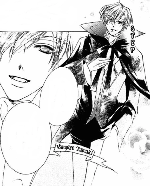 Haruhi takes two candies from her pocket and gives them to the twins who eat their candy quickly and say “Trick or Treat!” again. Much to the twins’ dismay, Haruhi gives them more. Tamaki Suoh, dressed as a vampire, interrupts them to reveal that Haruhi’s blazer is filled with candies because he doesn't want her to endure the suffering he endured from the twins the previous year. He then recounts how, when he didn’t have candy to give to the twins, they wouldn't stop tickling him and might do the same to an unsuspecting Haruhi.