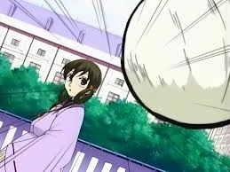 Suddenly, Tamaki knocks Haruhi down just as a Kemari ball whizzes by. He's infuriated with the twins who kicked the ball, though they blame him for not stopping it. Cut to the Newspaper Club with Akira saying they have no choice but to involve the hosts in order to save their club, the reporters being quite wary. Cut to Tamaki, whose athletic reputation is now on the line, pushing him to demonstrate his skill with a powerful but uncontrolled kick, launching the ball into the air until it comes down through a window, smacking Akira in the head.
