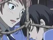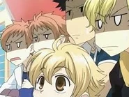 Hikaru and Kaoru gape at Tamaki's persistance to win their game...