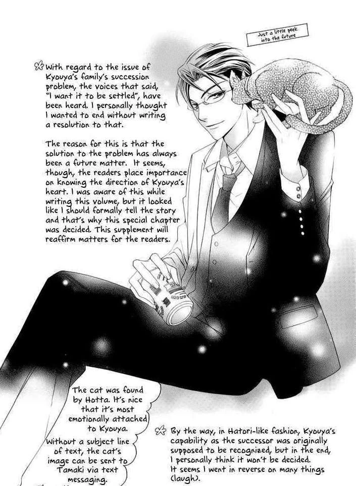 Bisco Hatori's line drawing of a young adult Kyoya portrays a "successful suit," legs crossed but tie loose, demonstrating both closed and open body language. He supports a cat in one hand and a can of beer in the other. The cat (pussy=woman as sexual object, in gross terms) is named Noel; interesting, in that Japan's Christmas Eve is an areligious night of merry-making and, ofttimes, sexual excess (much like prom night in the U.S.) Kyoya's family is wealthy, but seeks to maintain the "old order" of zaibatsu vs. the modern-day keiretsu; and Hatori neither confirms nor denies Kyoya's place within the Ootori hierarchy. Kyoya is the Cool Host and is a character depicted as aloof from others and one who keeps notebooks; his mother is a persona non grata and his father a distant, manipulative figure along with his brothers. His sister Fuyumi, on the other hand, is kind and nurturing towards him. Coincidental symbolism or deliberate?