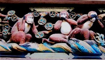 The familiar symbol of |Three Wise Monkeys is Japanese in origin and admonishes
